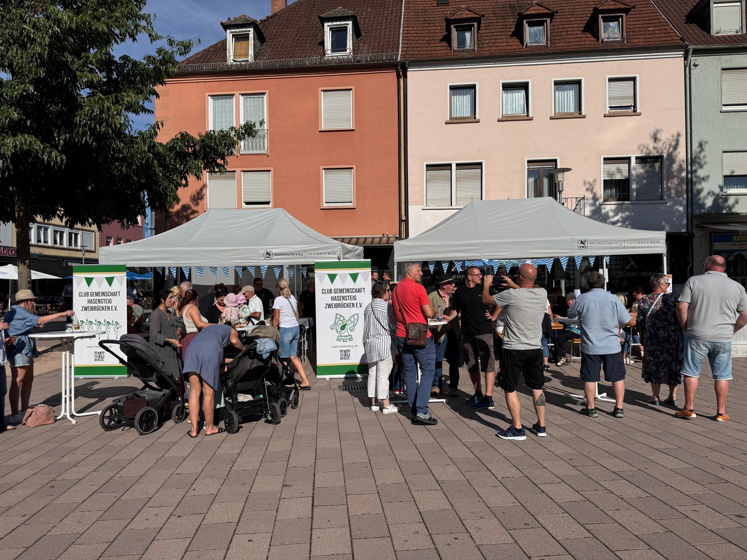 Am 07. September wurde das Marktfrühstück durch die "Clubgemeinschaft Hasensteig Zweibrücken e.V." ausgerichtet. Die vielen engagierten Helfer boten an unserem letzten Sommertag Bayrische Spezialitäten, wie Brezeln und Obazda an. Wer nach Kaffee und Kuchen suchte, wurde auch nicht enttäuscht. Die große Auswahl machte es einem schwer, sich zu entscheiden. Volker Siener begleitete das gut besuchte Frühstück musikalisch.