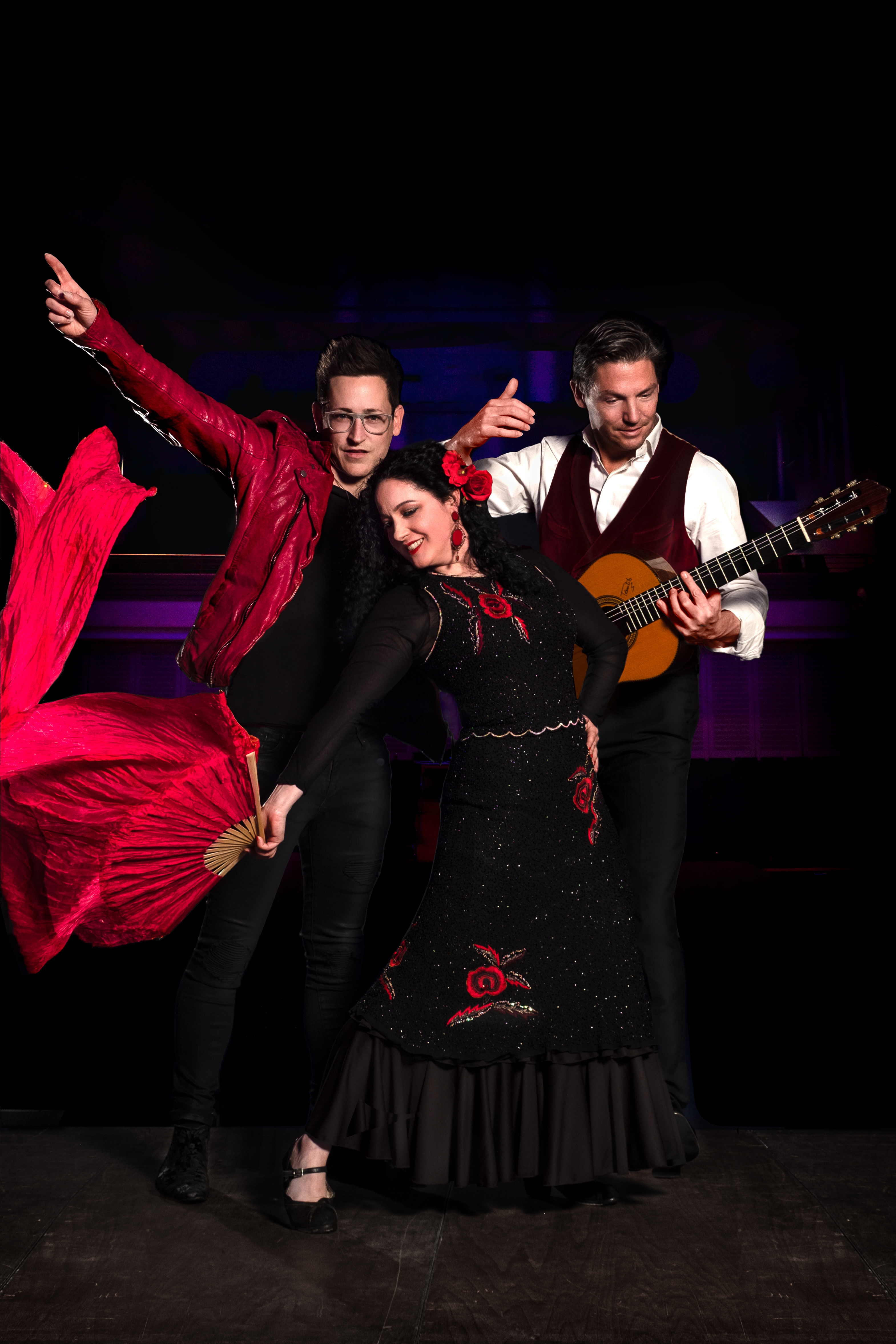 Magisches Licht, dynamischer Tanz, feurige Musik – diese Produktion ist eine perfekte deutsch-spanische Symbiose, in der die beiden Gitarren-Virtuosen Jan Pascal und Alexander Kilian zusammen mit der ebenso brillanten Tänzerin Mercedes Pizarro der ungebremsten Leidenschaft und Energie des Flamencos huldigen. Ganz ohne Rüschenhemd, aber natürlich mit reichlich iberischer Klangfarbe im typischen Café del Mundo-Style: impulsiv, mysteriös, voller Gegensätze, kraftvoll, berührend und anmutig. Mit einem „Flamenco-Erlkönig“ als Höhepunkt, der Goethes Text noch geheimnisvoller macht. Das ist große Kunst, die so wie der Flamenco schon längst ein faszinierendes Eigenleben entwickelt hat.