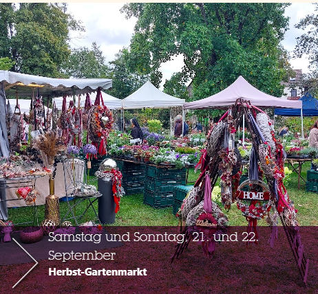 Der Herbst- und Gartenmarkt im September beschließt traditionell die Rosengartensaison mit einem letzten Highlight: Rund 60 Aussteller werden erwartet, die mit einer Vielfalt an Pflanzen, Werkzeugen und Hilfsmitteln, Gartenaccessoires und kulinarischen Spezialitäten aufwarten. An beiden Tagen veranstalten die Rosengärtner darüber hinaus kostenlos fachkundige Führungen.