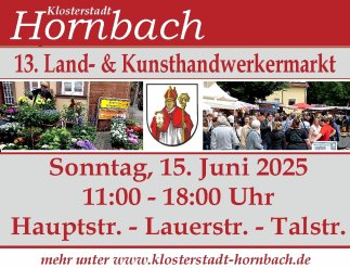 Dank der Räder kann der 13. Land- & Kunsthandwerkermarkt in Hornbach ganz ohne Parkplatzsorgen besucht werden. Im Bereich Haupstraße, Lauerstraße und Talstraße werden regionale Köstlichkeiten und Handwerkskunst angeboten. Die modernen Bikes von ECube3 können bei einer Ausstellung direkt an der Radroute bewundert werden. Dort ist auch die Abgabe- und Stempelstelle für das Buchstabenrätsel.