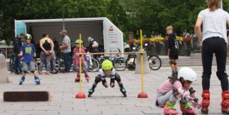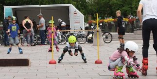 E-Bike Teststation von Radsport Sieber. Die Verkehrswacht bietet Radgravuren an und das Rote Ritter Mobil bringt zahlreiche Fahrgeräte und Spielzeuge zum Ausleihen mit. Ein Skateparcours kann auch mit Scootern, Longboards und Waveboards absolviert werden. Anmeldungen für den Bremskurs bitte