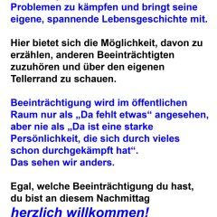Sei dabei – jede Beeinträchtigung, jede Geschichte ist willkommen.