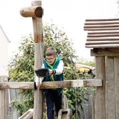 Die „Kletterbaumstämme“ wurden nun durch ein neues, vielfältig nutzbares Großspielgerät ersetzt werden. Ein Kletterturm, eine Sandspielhütte, eine Trampolinanlage und eine Kombischaukel runden das Spielangebot ab. Die Sitzgelegenheiten wurden ebenfalls ersetzt und Bepflanzungen wurden erneuert und ergänzt.