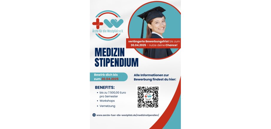 Der Verein hat aktuell zwar schon zahlreiche Bewerbungen erhalten. Um Schülerinnen und Schülern, die gerade Abitur machen, die Bewerbung zu erleichtern, sind nun jedoch bis Ende April Bewerbungen möglich. Bei Fragen erteilt der Verein gerne Auskunft per Mail über info@aerztefuerdiewestpfalz.de sowie über Katja Altmeyer (Kreisverwaltung Kusel, 06381 424-323) und Nagihan Bostanci (Kreisverwaltung Donnersbergkreis, 06352 710-486).