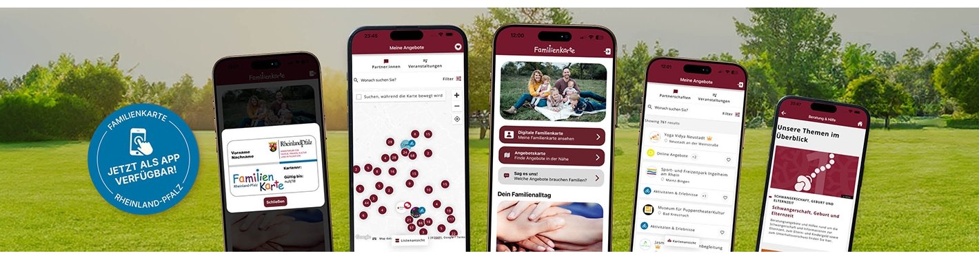 Die Familienkarte Rheinland-Pfalz ist eine Initiative des Ministeriums für Familie, Frauen, Kultur und Integration Rheinland-Pfalz, die Familien in allen Lebensbereichen unterstützt. Auf der Online-Plattform unter https://familienkarte.rlp.de/ finden Sie zahlreiche Informationen, Vergünstigungen und Anregungen für ein nachhaltiges Leben. Ermöglicht wird dies durch Partnerschaften mit lokalen und regionalen Unternehmen, Vereinen, Kultur- und Bildungseinrichtungen sowie sozialen Organisationen.