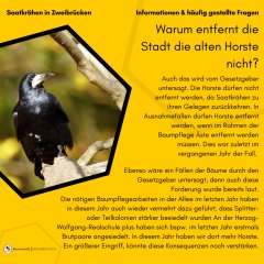 Die Stadtverwaltung Zweibrücken hat gemeinsam mit der beim Umwelt- und Service Betrieb Zweibrücken angesiedelten unteren Naturschutzbehörde eine Informationskampagne erstellt, die häufig gestellte Fragen rund um das Thema Saatkrähen im Stadtgebiet beantworten soll.