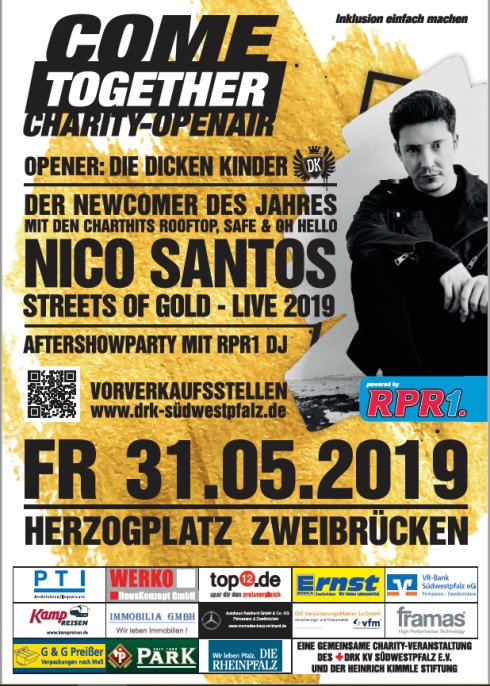 am 31.05.2019 lud das Deutsche Rote Kreuz gemeinsam mit der Heinrich-Kimmle-Stiftung zum großen Kindertag mit anschließendem Konzert ein. Der Kindertag fand von 11:00 Uhr bis 16:00 Uhr mit zahlreichen Spiel- und Beschäftigungsmöglichkeiten für Jung und Alt statt. Selbstverständlich wurde auch kulinarisch wie immer was geboten! Von 16:00 Uhr bis 18:00 Uhr wurde der Herzogplatz dann geräumt und auf das Konzert vorbereitet. Als Vorband traten die „Dicken Kinder“ auf und als Hauptakt gab uns ab 20:00 Uhr Nico Santos musikalisch „was auf die Ohren “.