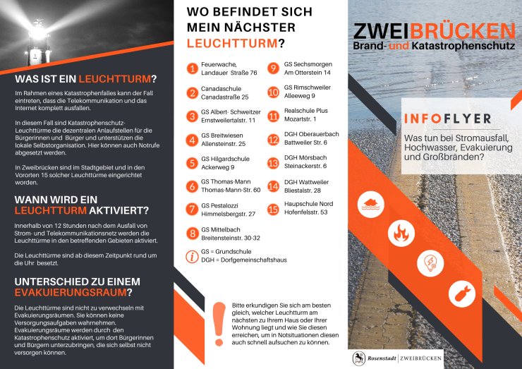 Hier finden Sie den aktuellen Flyer zum Brand- und Katastrophenschutz der Stadt Zweibrücken. Dieser soll jährlich neu aufgelegt und aktualisiert werden.
