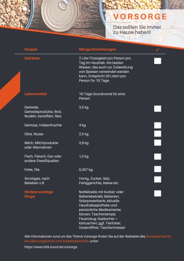 Von Getränken bis Lebensmitteln sowie weiteren wichtigen Dingen für den Notfall