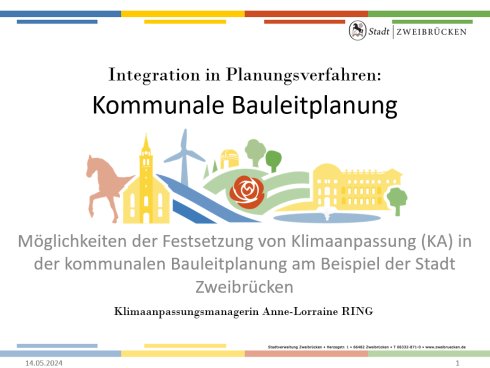 Als Vorbild für mittlere und kleine Kommunen wurde das damalige Vorgehen am 14. Mai 2024 im Rahmen einer Veranstaltung des Zentrums für Klimaanpassung von der Klimaanpassungsmanagerin vorgestellt: