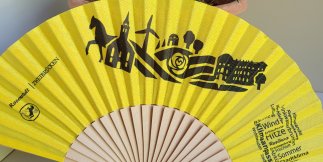 Die Klimafächer für Zweibrücken bestehen deshalb aus den nachwachsenden Rohstoffen Baumwolle und Holz aus europäischen Wäldern und wurden in Spanien gefertigt, um den Transportweg - und die damit einhergehenden Treibhausgasemissionen - gering zu halten. Die Baumwolle ist OEKOTEX Standard 100 zertifiziert, was die Schadstofffreiheit des Stoffes gewährleistet.