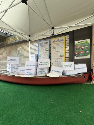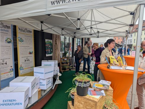 Am Dienstag, den 17. September 2024 organisierten das Innenstadtbüro und das Klimamanagement den ersten Tag der Klimaanpassung in Zweibrücken. Unter dem Motto "Wir sitzen alle in einem Boot!" zog der mit einem echten Boot ausgestattete und mit zentralen Botschaften gefüllte Infostand neugierige Blicke auf sich.