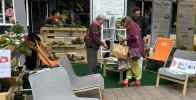 Passend zum diesjährigen Motto "Zweibrücken soll grüner werden" hat die Innenstadtkoordination am 4. Mai auf dem Alexanderplatz zum Marktfrühstück ein grünes Wohnzimmer eingerichtet. Auf dem grünen Teppich, der umringt von bepflanzten Europaletten war, konnten Interessierte die kleine grüne Oase inmitten des versiegelten Platzes auf sich wirken lassen. Nebenan im Infopavillon erhielten Neugierige auf Plakaten gebündelte Informationen zu bereits umgesetzten und geplanten Maßnahmen verschiedener städtischer Ämter und Tochterunternehmen im Zusammenhang mit der Klimawandelanpassung und dem Klimaschutz. Für Fragen und Ratschläge war das Klimamanagement der Stadt Zweibrücken mit Anne-Lorraine Ring und Jonas Kirch vor Ort. „Die Veranstaltung war ein voller Erfolg.“, berichtet der Klimaschutzmanager. „Das gute Wetter und die freundliche Gestaltung des Wohnzimmers hat die Menschen zum Innehalten und Nachforschen bewegt.“, so Kirch weiter. Man habe sich konstruktiv austauschen und hilfreiche Hinweise aus der Bevölkerung aufnehmen können, fügte die Klimaanpassungsmanagerin hinzu. Und: „Wir konnten auch über die bisher unscheinbaren Maßnahmen der Stadt in Sachen Klimaanpassung aufmerksam machen.“. Neben süßen und herzhaften Teilchen der Bäckerei Leiner erhielten alle Vorbeigekommenen ein Pflänzchen des grünen Wohnzimmers, um Zweibrücken grüner werden zu lassen. Am Ende waren alle Pflanzen mit der Botschaft verteilt worden.