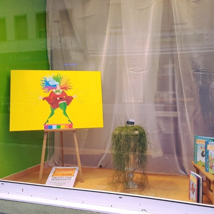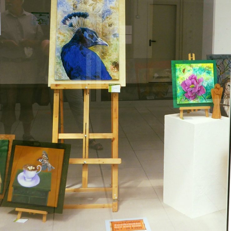 Mehr als 60 Künstler/innen präsentierten ihre Werke in den Schaufenstern der Geschäfte. Unter dem Motto "Kunst trifft Handel" war alles vertreten: Malerei, Skulptur, Zeichnung, Installation und Fotografie.