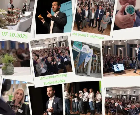 Am 07. Oktober 2025 luden die Wirtschaftsförderungsgesellschaft Südwestpfalz und die Wirtschaftsförderung Zweibrücken im Rahmen der Standortinitiative SüdWestPfalz zum Unternehmertag Südwestpfalz in das Bürgerhaus Schuhfabrik nach Waldfischbach-Burgalben ein. Circa 260 Unternehmerinnen und Unternehmer folgten dem Aufruf, um dem grandiosen Vortrag „Profiling: Menschen lesen und überzeugen“ von Mark T. Hofmann zu lauschen. Danach gab es für die Unternehmerinnen und Unternehmer genügend Gelegenheiten, sich beim Netzwerken miteinander auszutauschen.